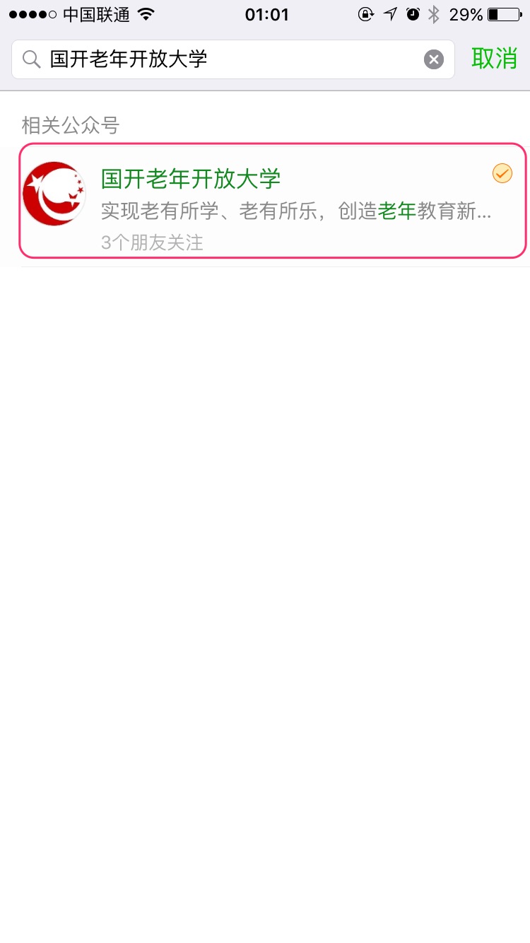 通过搜索关注公众号