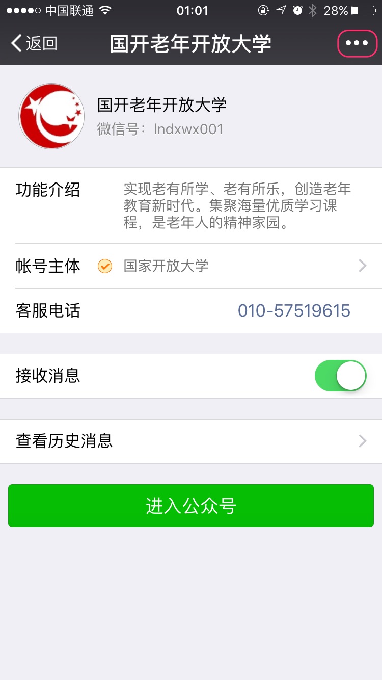 • 除了通过搜索添加公众号您还可通过扫二维码关注,扫码后将直接进入关注公众号步骤6