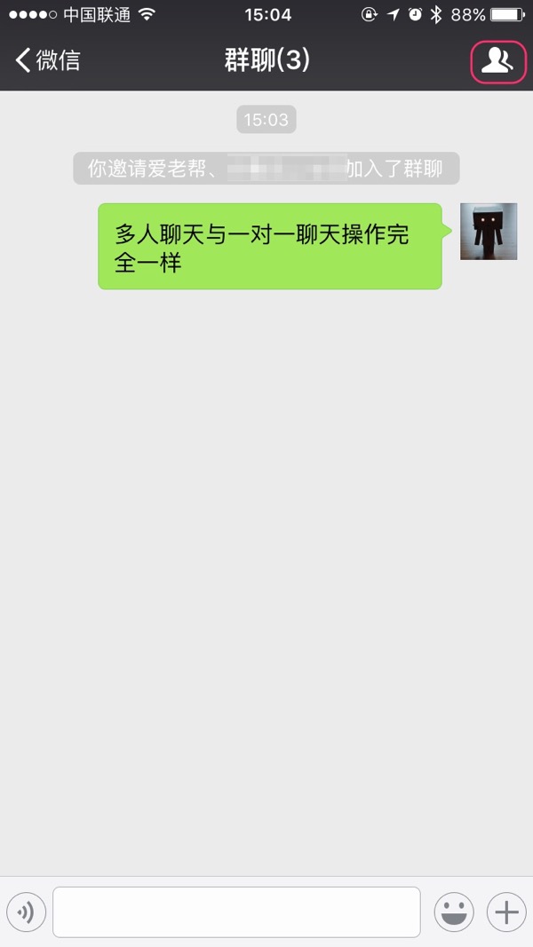 如要添加或删除群聊内成员,请点击聊天界面右上角的“人像”图标。