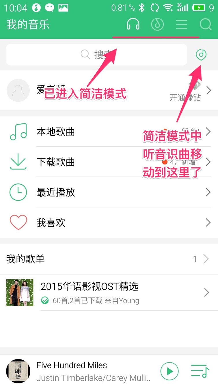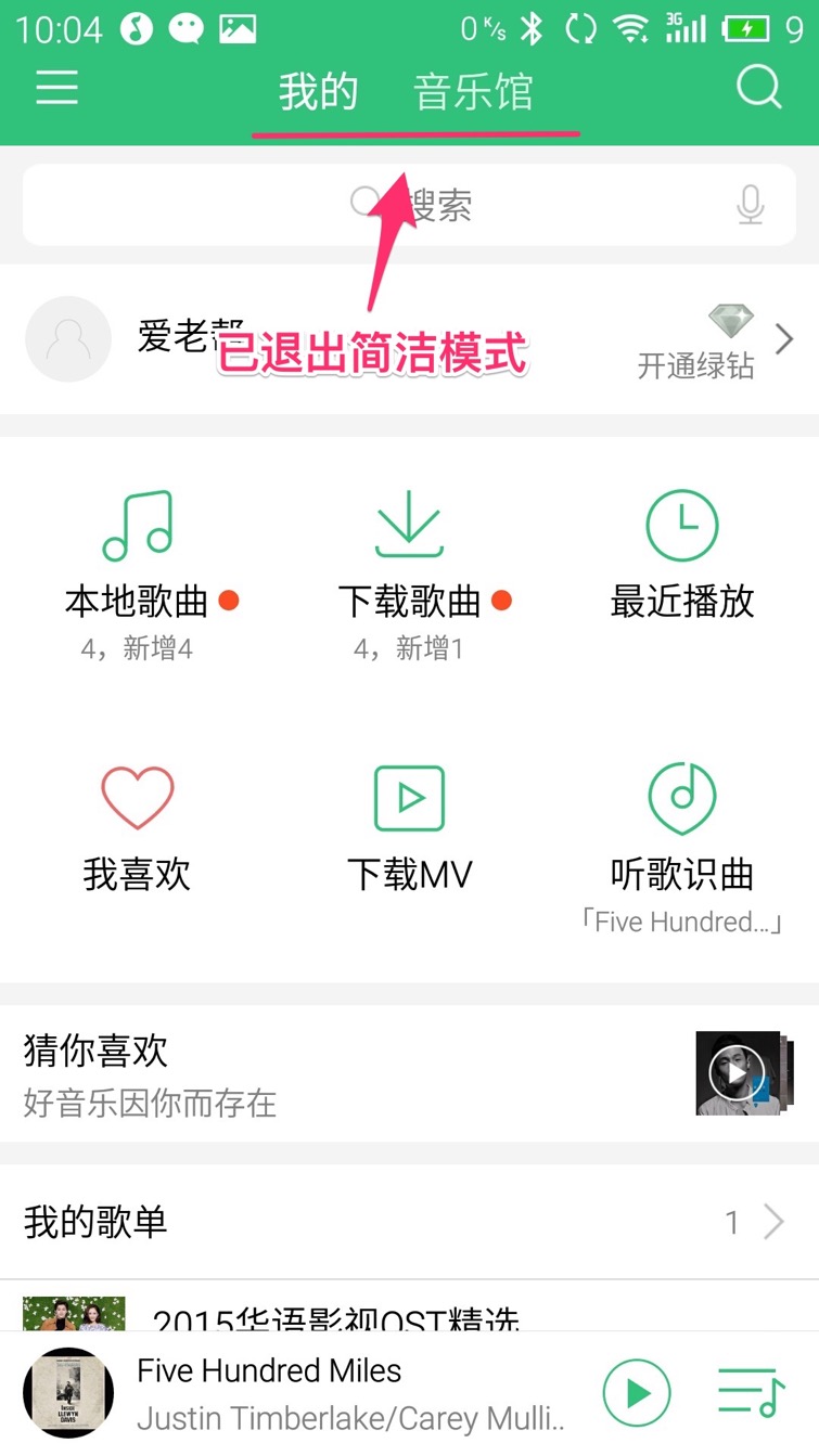 新版QQ音乐提供了一个简洁模式,该模式与传统界面差异较大,这就造成网上许多教程失效,下面我们介绍如何在简洁模式和默认模式中切换。