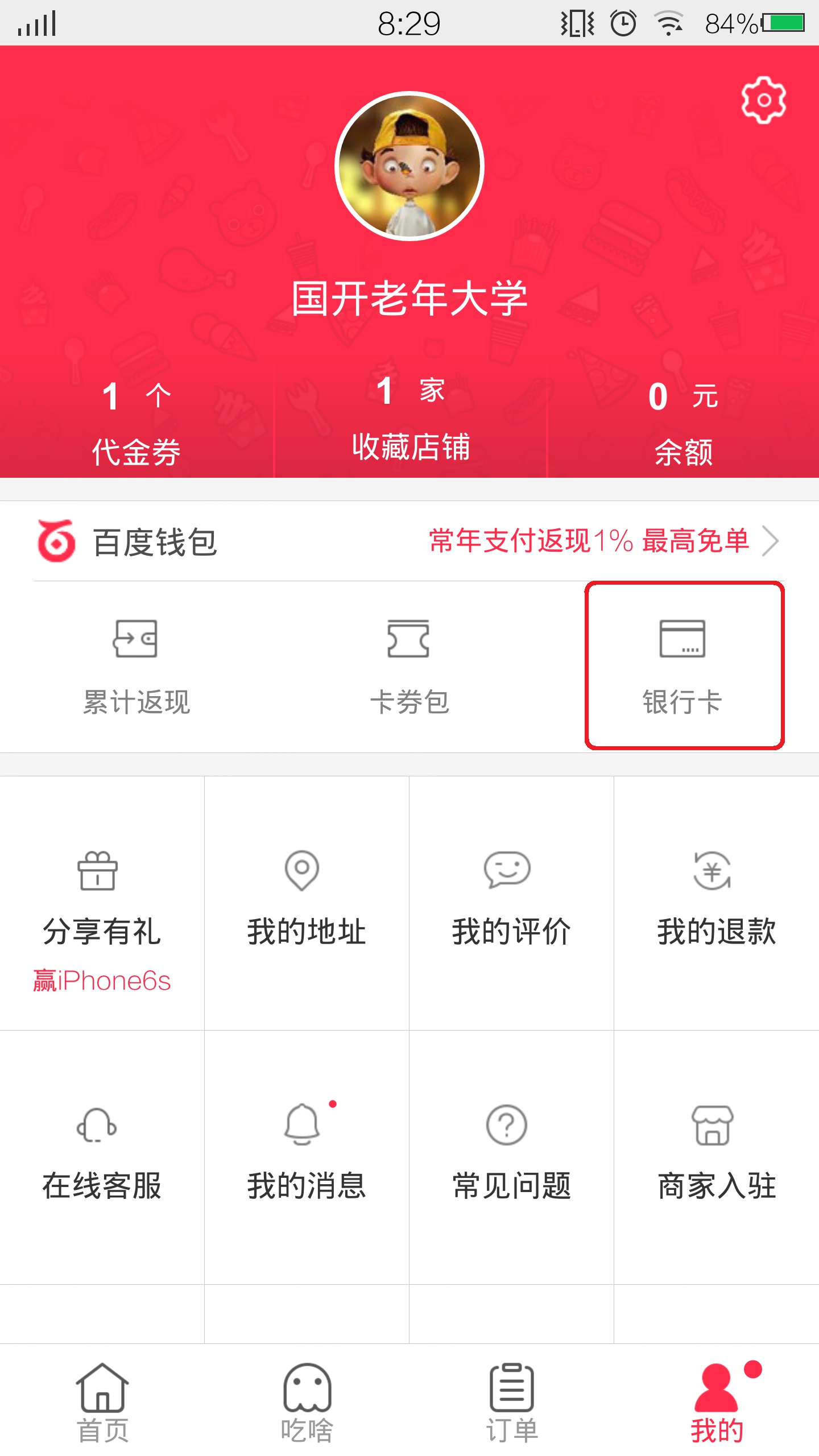 绑定银行卡到百度外卖