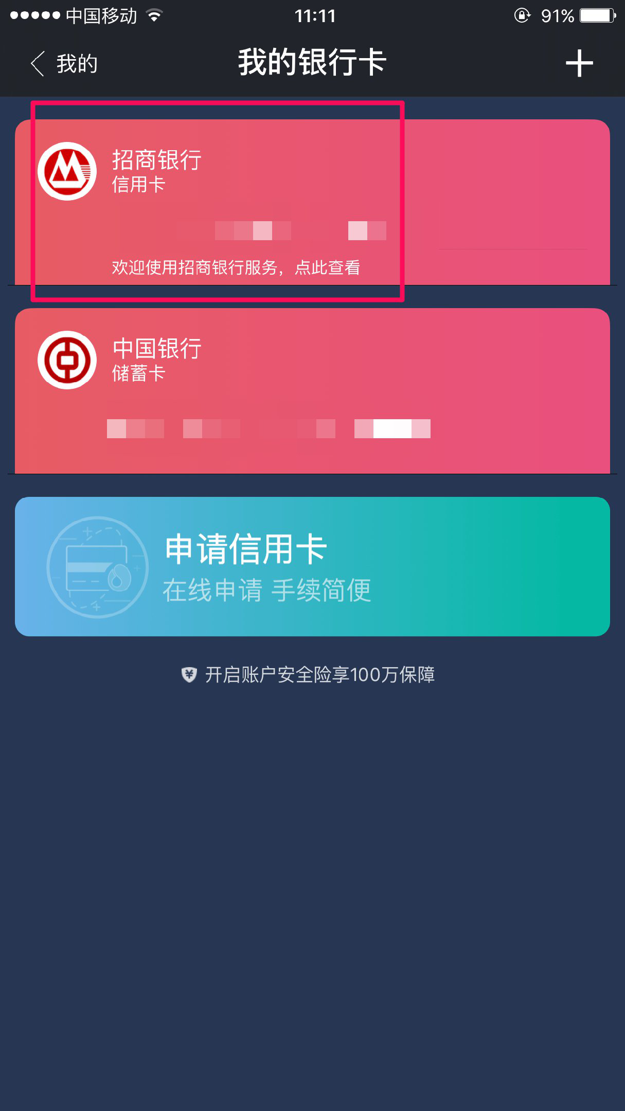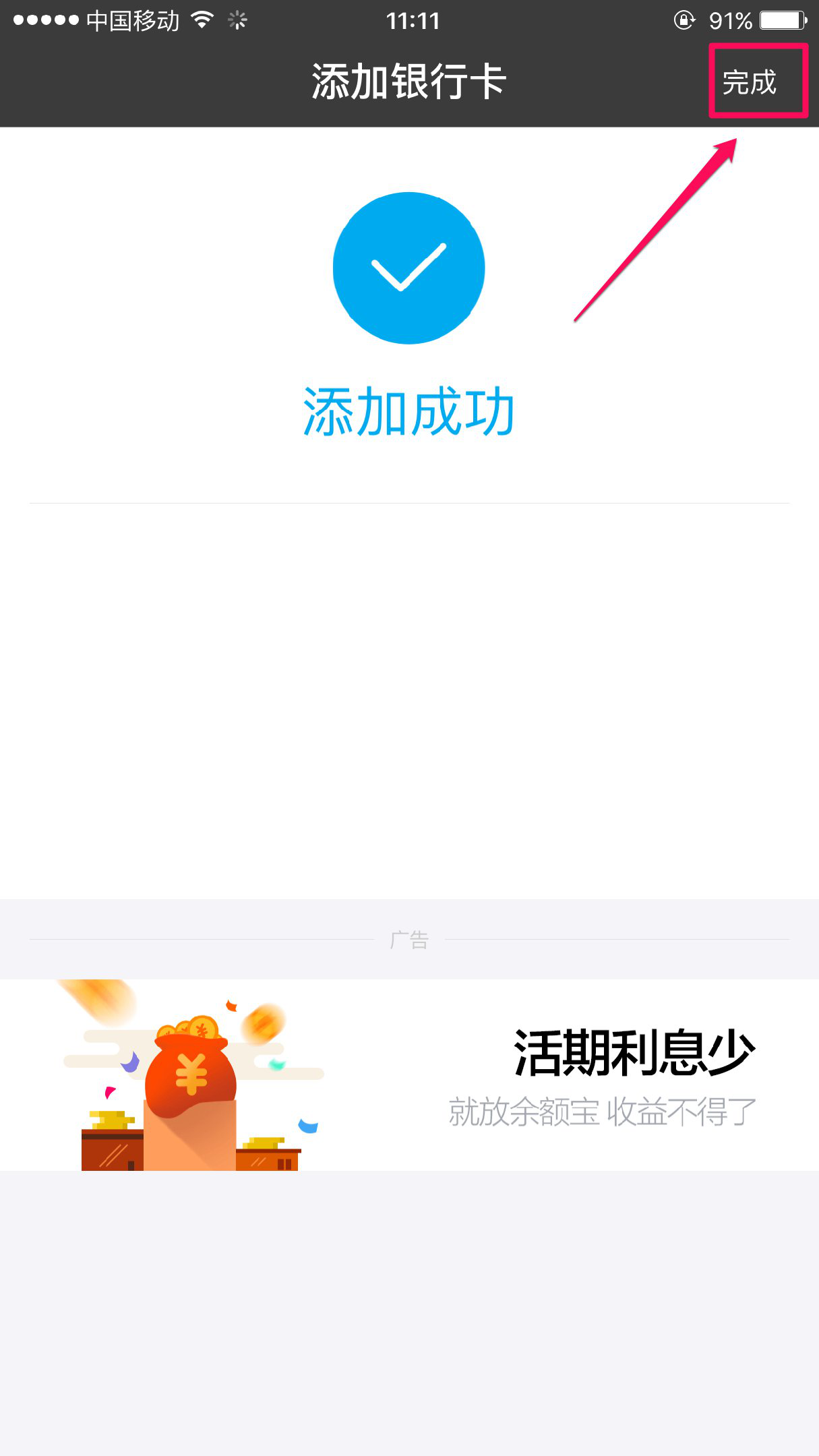 点击完成按钮,即可查看已添加的银行卡信息