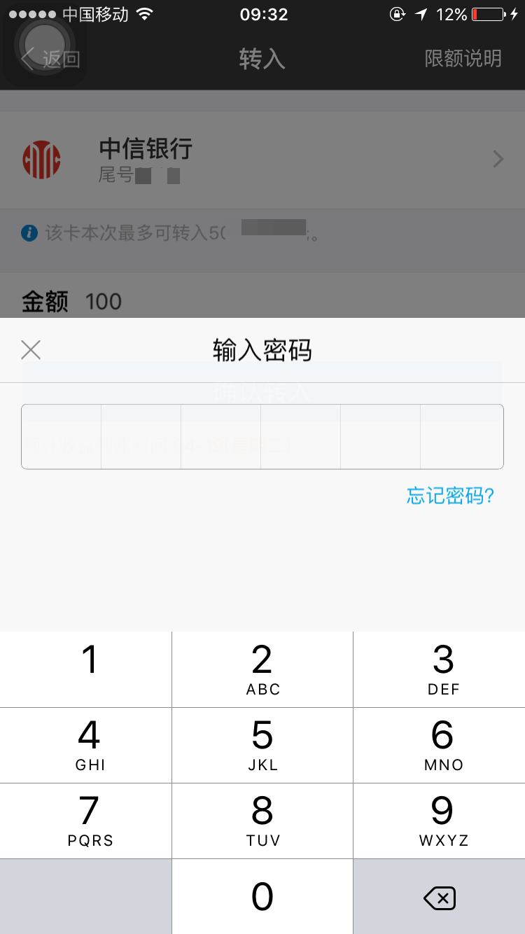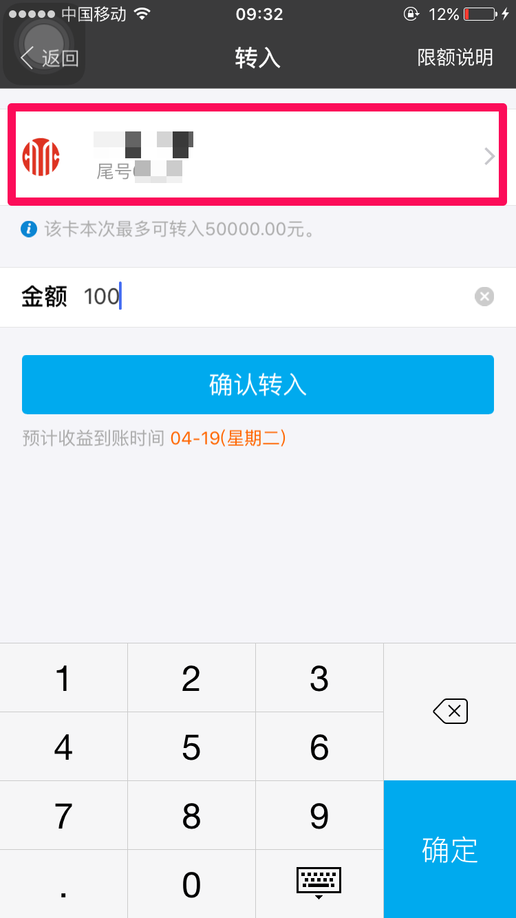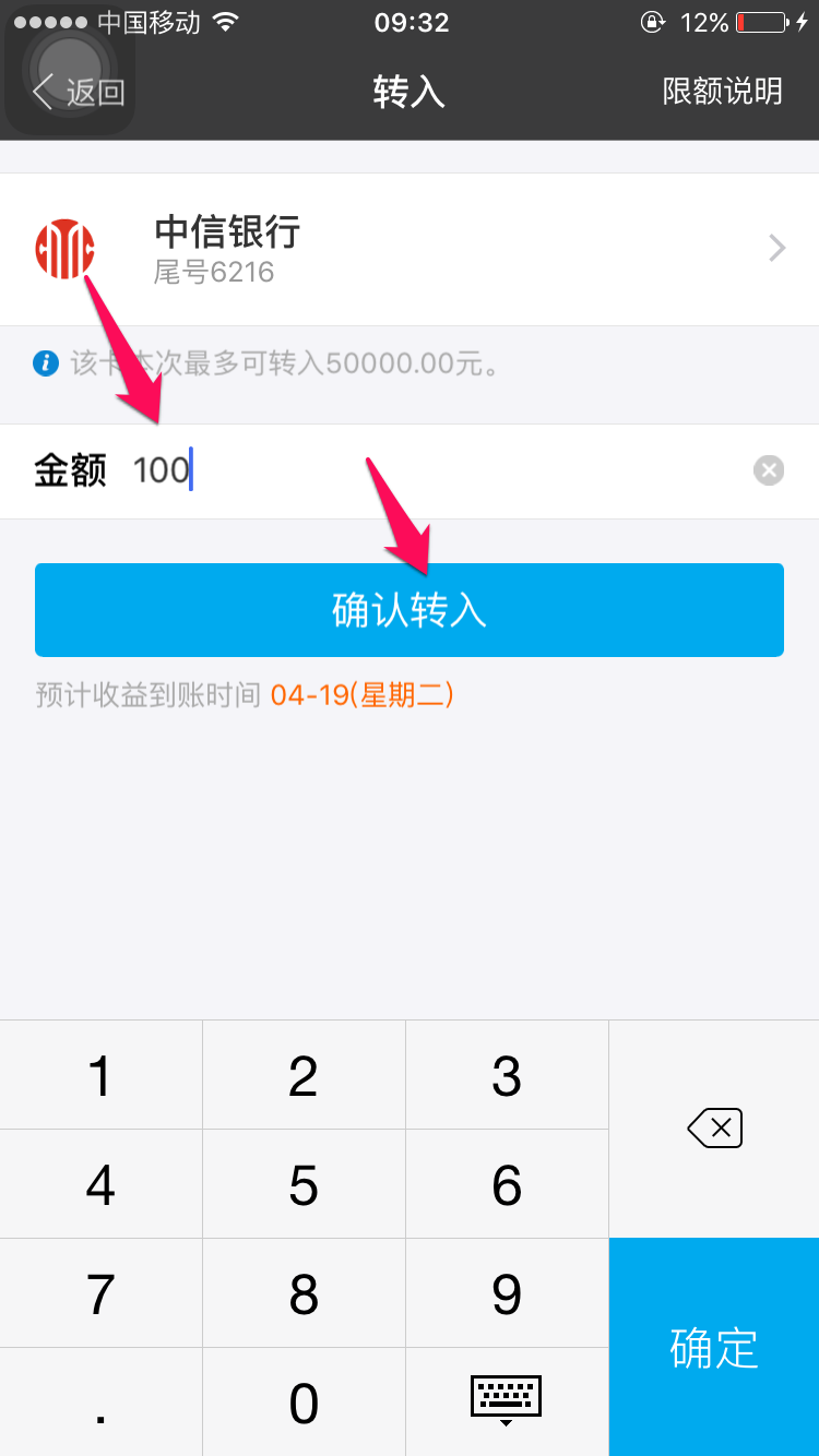 输入要转入的金额,点击确认转入