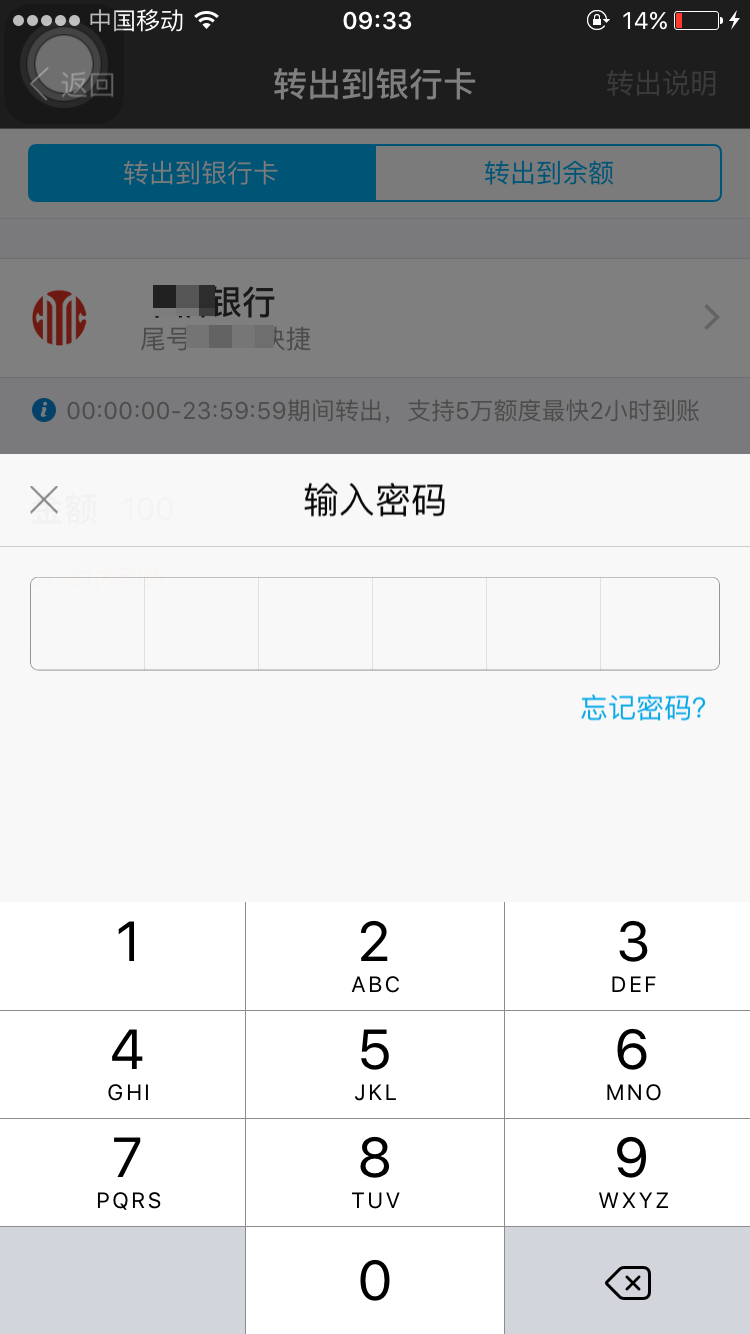 输入您的银行卡支付密码